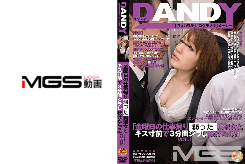 日々仕事に追われる美淑女OLにとって、金曜日のお酒は気を緩めることができる時間。そしてそこにちょいワルを仕掛けるDANDY。帰宅する女が乗ったエレベーターを満員状態にして正面から接近!吐息がかかるほど顔と顔を近づけるとキス寸前の状態で3分間。見ず知らずの男とその気になってしまった美淑女にジラし続けた後のキスをすると。